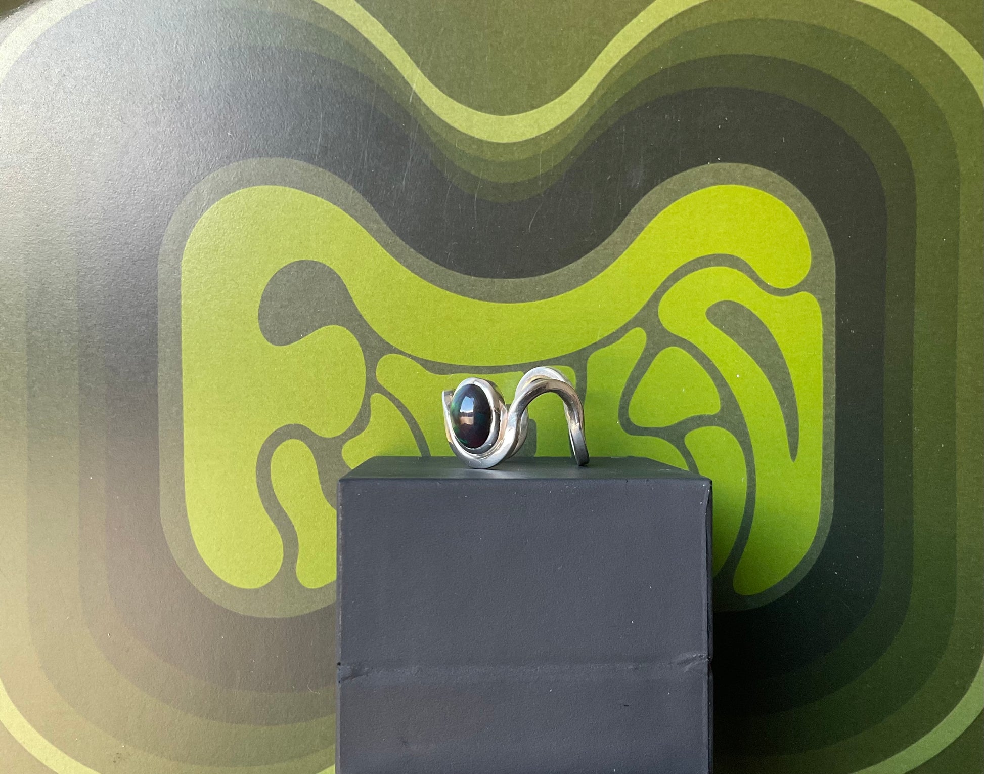Bague "Onda" Argent et Opale Noire